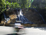 A degradação da lona plástica, constatada pela reportagem, é consequência do trabalho de contenção de encostas em curso desde o dia 22 de fevereiro quando a forte chuva atingiu o sistema.