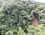 Marcas de deslizamento de terra, no trecho de serra na rodovia Anchieta, estrada do sistema gerenciado pela concessionária Ecovias